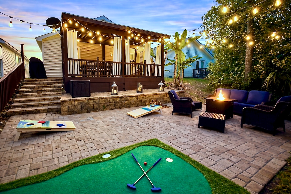 步行至海滩!小屋,带高尔夫球车和便利设施
