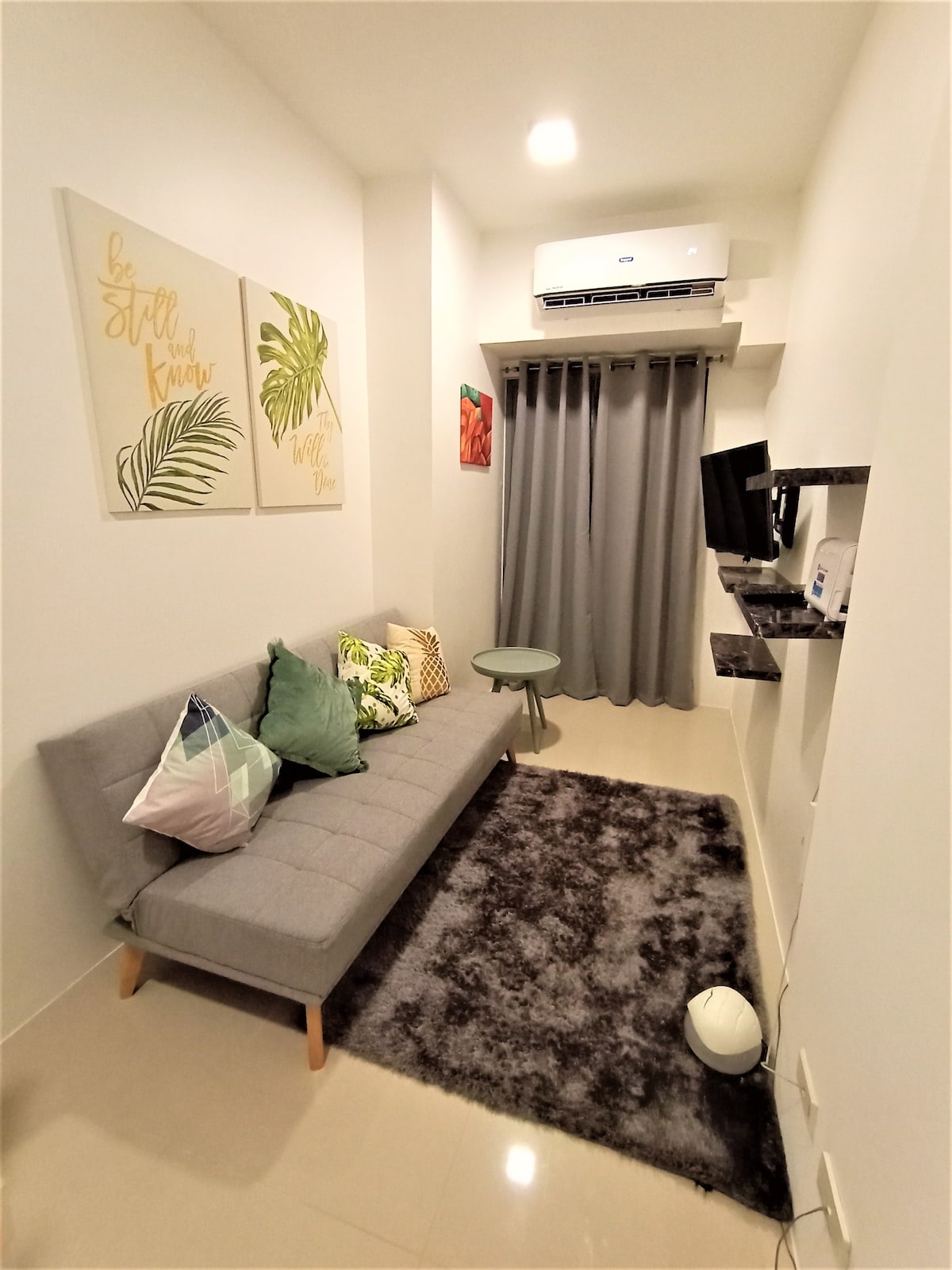 Unit is Renovated for Airbnb purposes. Inverter Aircon /smart TV /microwave/fridge /shower heater /tower 1 /facing amenities/morning sun/with balcony Due to the strict protocols of SM light . EVERY guest must provide 1 VALID ID each (please provide upon booking) for registration purposes. also be aware that all guest CANNOT have visitors for safety and security as per building administrator (strict building policy)