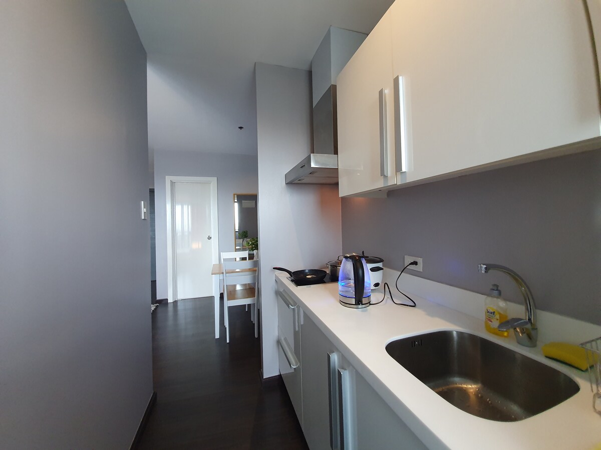 Modern&spacious 1BR w/ balcony and pool just a few kilometres from the airport and within walking distance from numerous attractions in the Manila Bay area. Well-equipped kitchen, sunlit living room, comfortable bed, Wi-Fi, Netflix, aircon & TV in both living and bedroom. Perfect place to stay for couples, small families or business travellers. Sauna and kids play area - free to use Pool - free up to three guests; P200 for each additional guests.