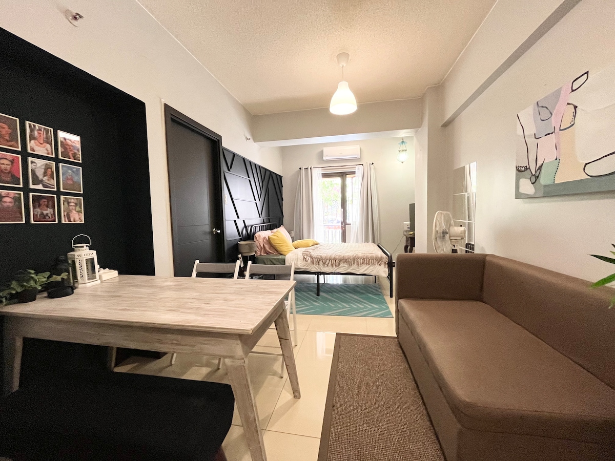 Perfectly situated in the heart of the Poblacion, Makati Restaurant and Entertainment District, our unit is located on the 2nd floor of a boutique condo building w/ 24 hour security. Our 1br boasts a modern Indonesian, Balinese interior and amenities including a 55" TV, Netflx, 550 Mbps, with full kitchen. Walk to nearby bars, casual restaurants, and fine dining. Experience art and culture! The perfect destination for couples, solo adventurers, a business traveler, short trips, and vacation!