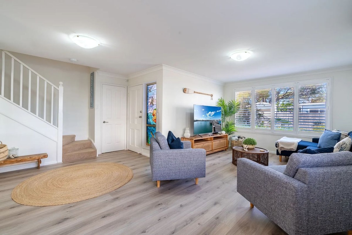 Relax with the family at this peaceful 3-bedroom townhouse, just moments from Lake Illawarra and Warilla Beach. Enjoy open-plan living, a private courtyard with Weber BBQ, fully equipped kitchen, 1.5 bathrooms. Sleeps 6 with a master (queen + ensuite), second queen room, and a room with 2 single beds. Also a secure lock up garage. Explore all the epic playgrounds, bike paths, cafés, and beaches - all minutes from the front door. Perfect for beach days, lakeside walks, and unwinding together!