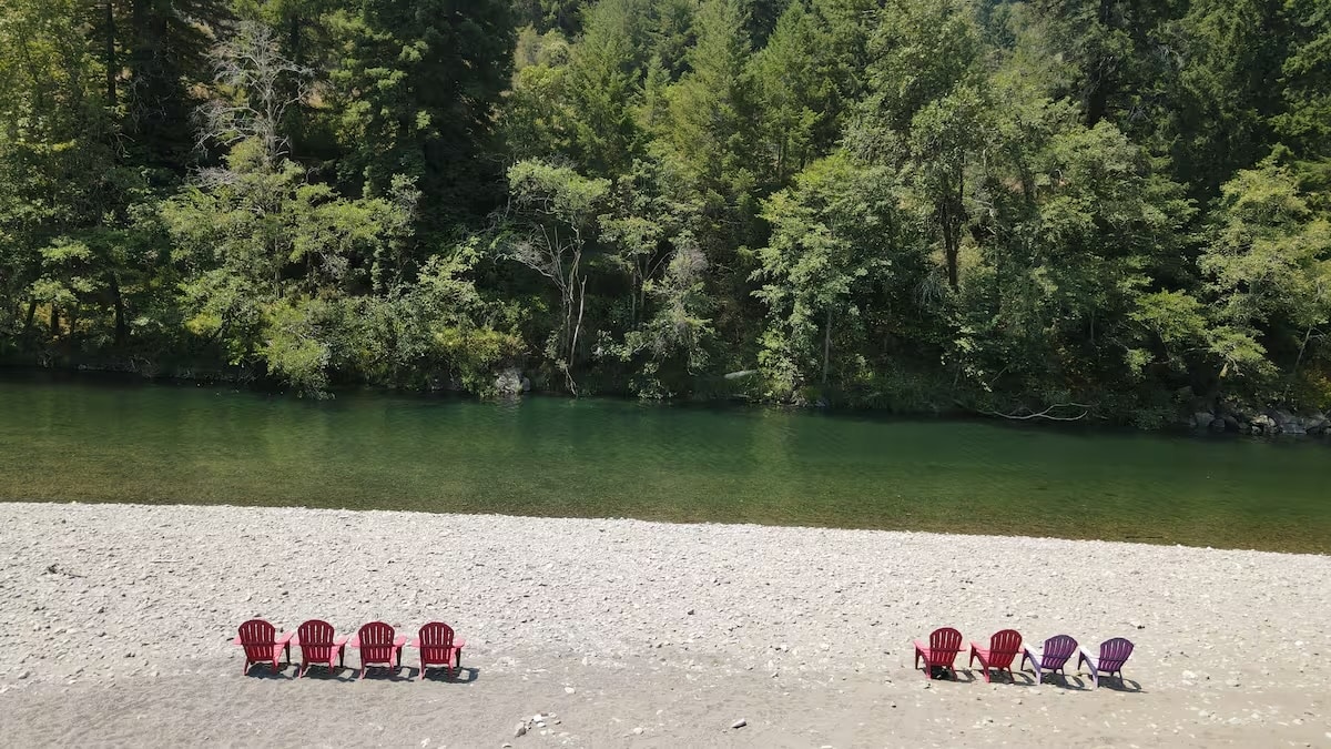 AVENUE OF THE GIANTS. Two fully furnished sleeping cabins and redwood campground on 15 private acres with river frontage.. Near Redwoods State Parks. Swim, kayak, sing around the campfire. Pet-friendly. Hot outdoor shower. Two bathrooms. 12 guests allowed, Cabins for 4. Bring tents and sleeping bags. No trailers. Not an event venue... insurance and septic will not accommodate) Fresh water, outdoor kitchen and picnic tables, cook top & BBQ. Grocery, gas and cafes less than a mile away.