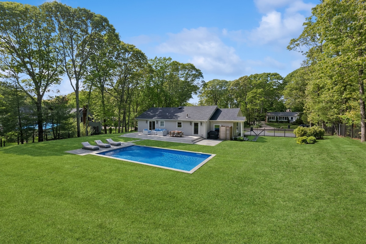 Escape and relax in this beautiful tranquil Southampton retreat! Newly remodeled cottage just blocks from the water. The home is nestled on 1/2acre quiet park-like setting located at the end of a long gravel driveway. Enjoy the private outdoor space with a fire pit, outdoor dining table, new dual BBQ and lounge chairs. Inside, the large dining room table easily sits 8. This stylish Coastal farmhouse has all new beds and furniture. Complete with Wifi, Cable, AC and Nespresso maker!