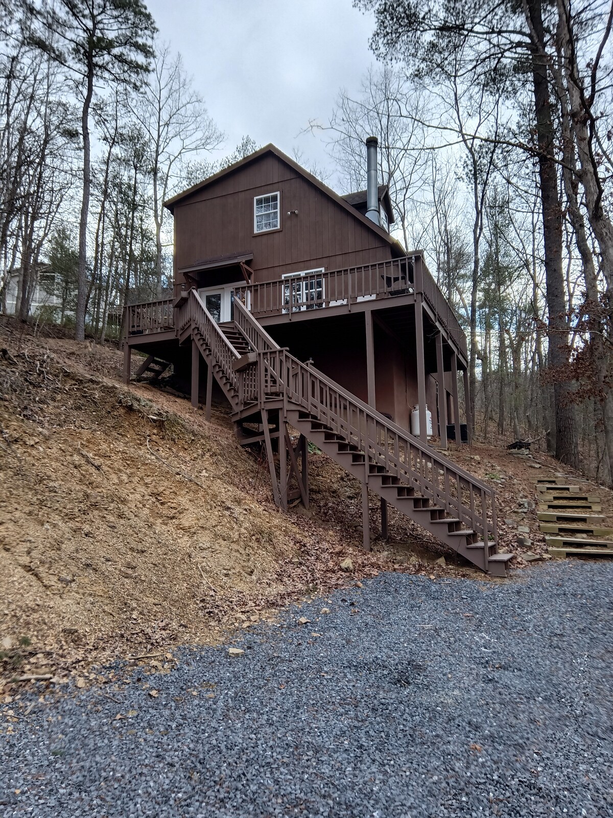 RELAX! This PEACEFUL mountain chalet boasts of TRANQUILITY and the opportunity for introspection and to re-connect with those you love. Surrounded by TREES, this getaway perfectly blends a bit of rustic charm and a touch of class. Unwind under the STARS or bask in the shade and dappled sun by day. Sit and listen to the call of NATURE. Wander through a magical field of green carpet moss, soak in a jacuzzi, get COZY in front of the fireplace. Take this “Stairway to Haven” and UNPLUG to RECHARGE!