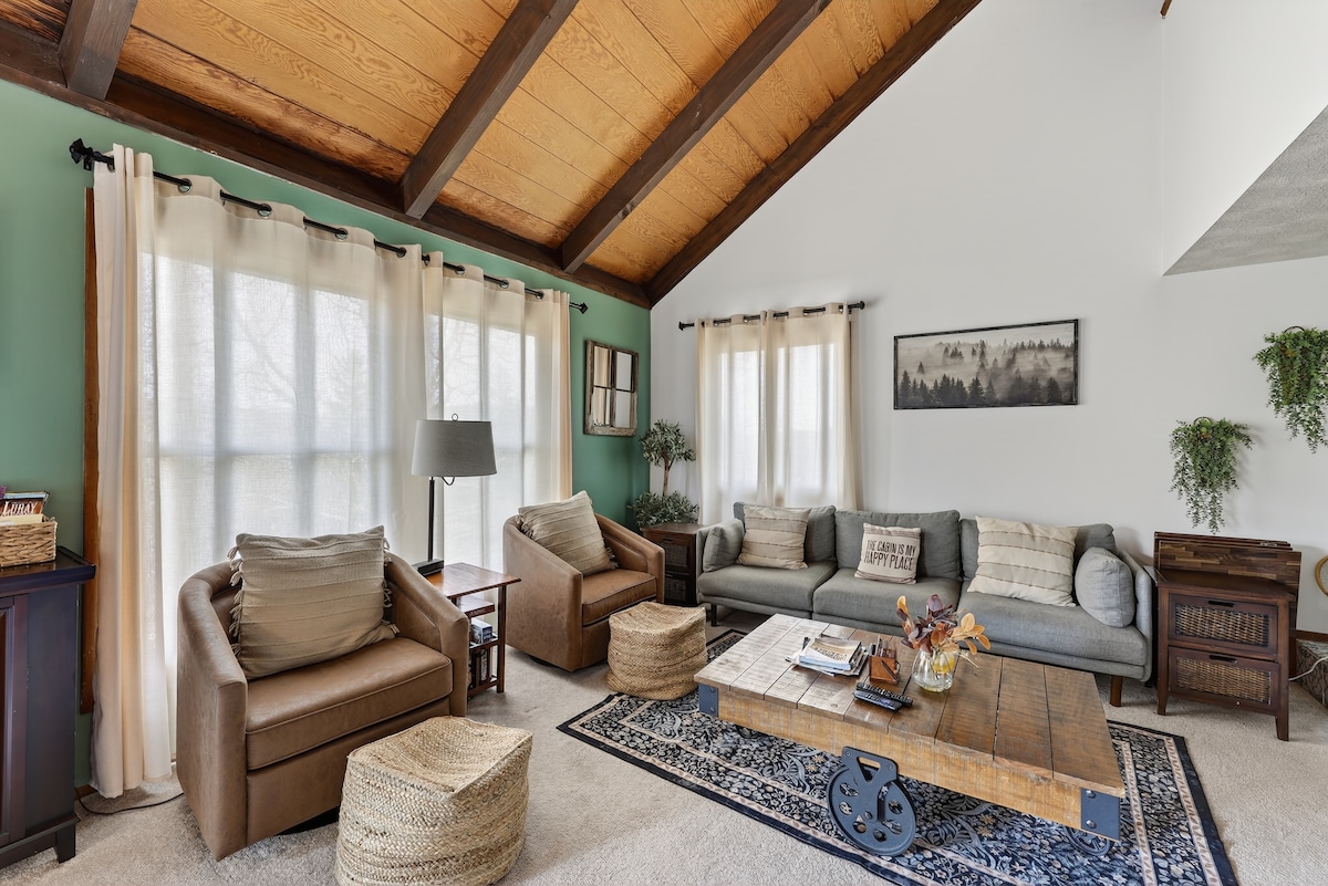Escape to Bluejay Bay—a luxury mountain chalet at Bryce Resort. Enjoy a private HOT TUB, spa-inspired bathrooms, plush bedrooms, Roku TVs, a fully equipped kitchen, cozy coffee corner, fire pit, and double decks near Lake Laura. The game room offers ping pong, foosball, Playstation, and an extensive board game library. Unwind & relax in this stylish & peaceful 2BR + loft retreat. A perfect all-season escape for couples, families, friends groups, and remote work!