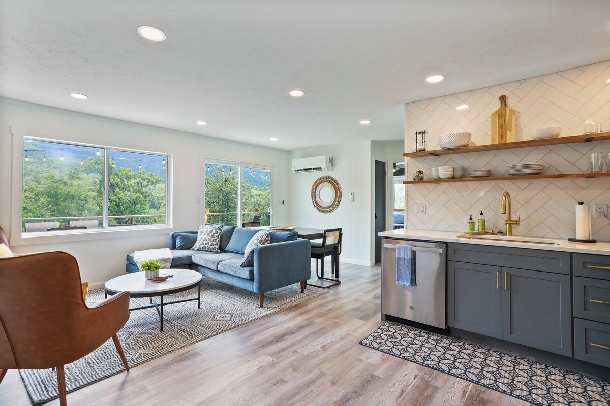 Amazing Mountain Views from this modern Scandinavian inspired guest suite nestled in the heart of the Shenandoah Valley!! Close to hiking, wineries, the river! Enjoy a cup of coffee on the patio and watch the sun rise over the mountains, unwind and watch a movie on the app connected flatscreen TV, refresh in the oversized shower with multiple heads including a rainfall feature. This two bedroom suite has its own entrance, private covered patio with mountain views and parking spot steps away.