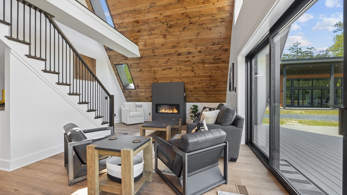 Escape to Hiya Cabin, the ultimate getaway to unwind, celebrate, or simply embrace some peaceful solitude. This stunning A-frame offers breathtaking Blue Ridge Mountains views, a private hot tub, and a soothing barrel sauna. Inside, a stylish and cozy retreat awaits with a plush king bed, a fully equipped kitchen, board games, Xbox, EV charge. Spend your evenings by the fire pit, enjoying the mountain air and starry sky. Minutes from Luray Caverns, Lake Arrowhead, Shenandoah National Park & more