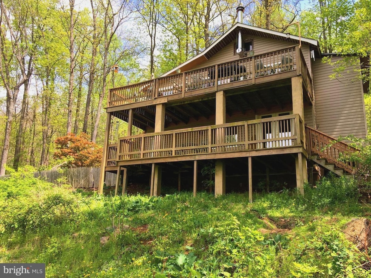 Take advantage of low weekday rates and work from your country home with strong Wi-Fi! Sunsets and sensational views await you at this RUSTIC retreat set in the mountains, just a few miles from Shenandoah National Park and a little more than an hour from Washington, DC. Enjoy the wood burning stove in the winter and the mountain breezes in the summer. Sip wine from the hot tub and gaze down on the Shenandoah River valley below. Visit the local winery (5 mins. away) or hunker down to relax.