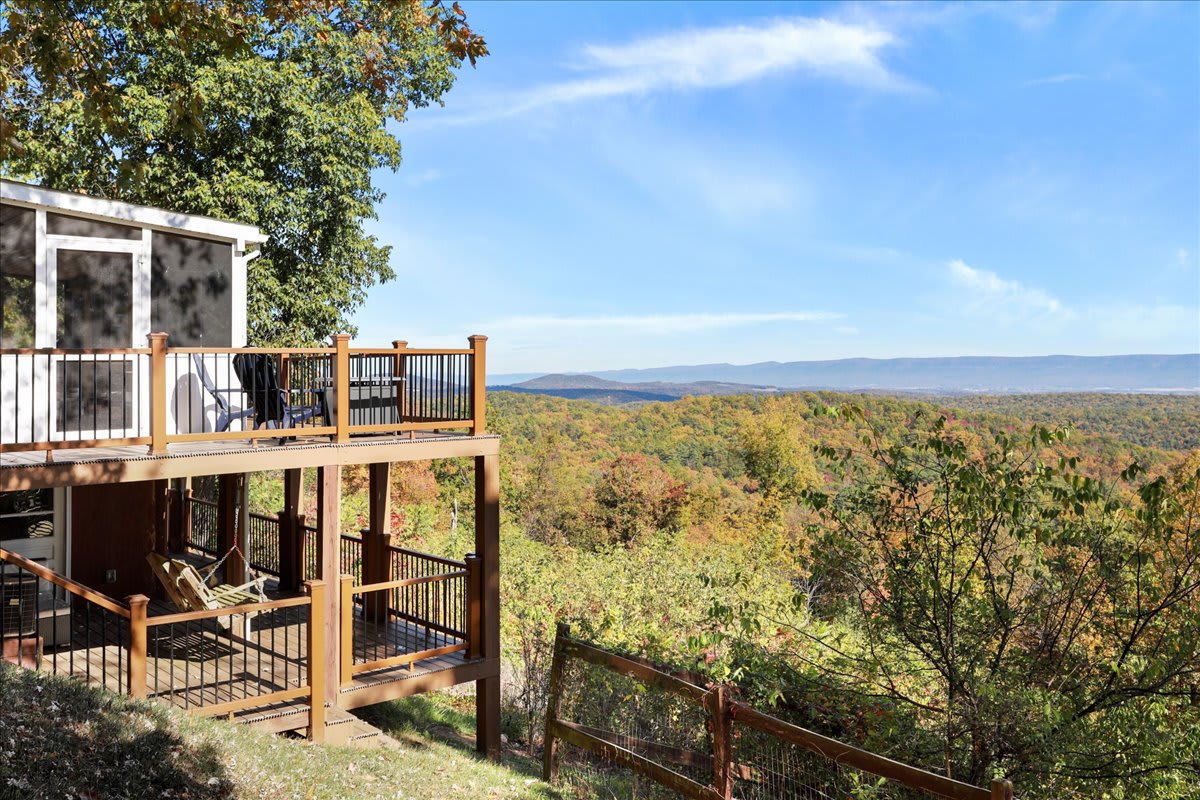 Moondance looks out over the valley with a bird's eye view of the mountains from an expansive deck. A two hour drive from DC offers a private and cozy, air-conditioned cabin, perched on top of a 5- acre lot in a private, wooded community. Day trips to small towns, festivals, and National Forests, offer an adventure with a cookout at sunset . Wrap-a-round deck has outdoor furniture and gas grill. Well equipped kitchen, wifi, bedroom, workspace, and a queen size sleep sofa.