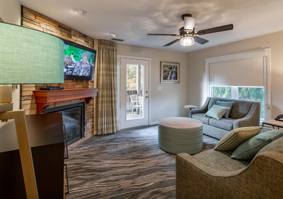 Stay at the Historic DTC Lodge in Dailey, WV and be transported back to the 1930’s, with modern comforts and lightning-fast Wi-Fi! This spacious hotel style Queen room with ensuite full bathroom with shower, fridge, microwave and Smart TV has all you need for a short or extended stay! Great stop to explore the Elkins, Snowshoe and Cannan Valley areas. This unique and historic stone structure, finely crafted during the Great Depression is part of the Tygart Valley Homesteads Historic District.