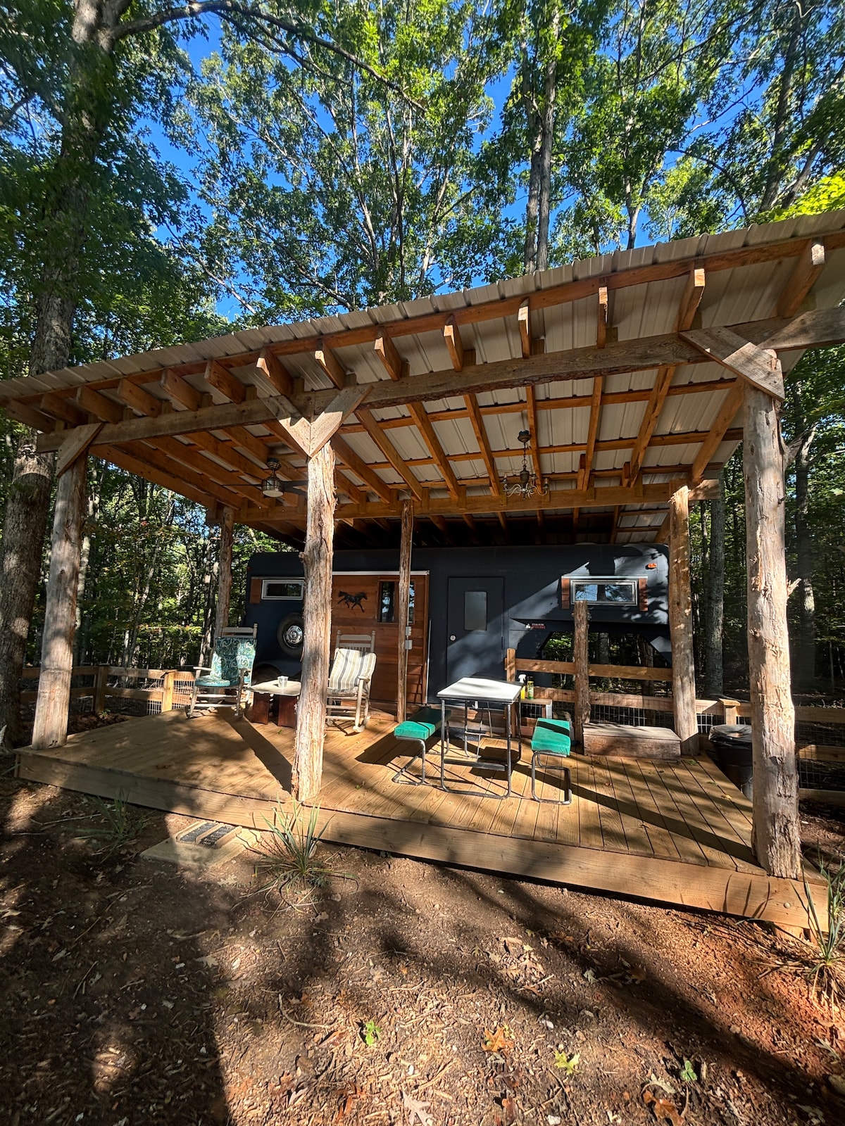 Experience the ultimate glamping adventure in our converted school bus! Nestled on 5 acres of land, the campsite features lush woods and a creek. Enjoy the peace and quiet of nature with the comfort of a home away from home. Our skoolie is the perfect basecamp for outdoor adventures-just 30 minutes to Richmond and 5 minutes from the nearest trailhead at Pocahontas State Park with pass included.