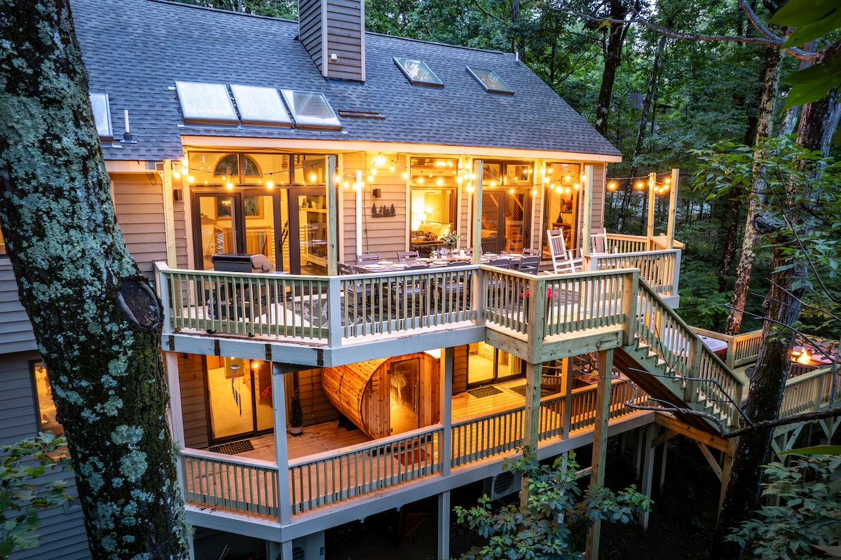 Stargazer is the perfect place to get away from it all! The stillness and serenity of being nestled in a bird and wildlife sanctuary is so good for your soul. Watch the sunrise from a hanging basket chair at 2700 feet of elevation, or wait for moonrise and toast spectacular star views! Relax in the sauna after a day filled with hiking and an al fresco meal on the deck. Roast s’mores at the deck fire table or over the side yard fire pit. There's magic in the air at this mountaintop retreat!