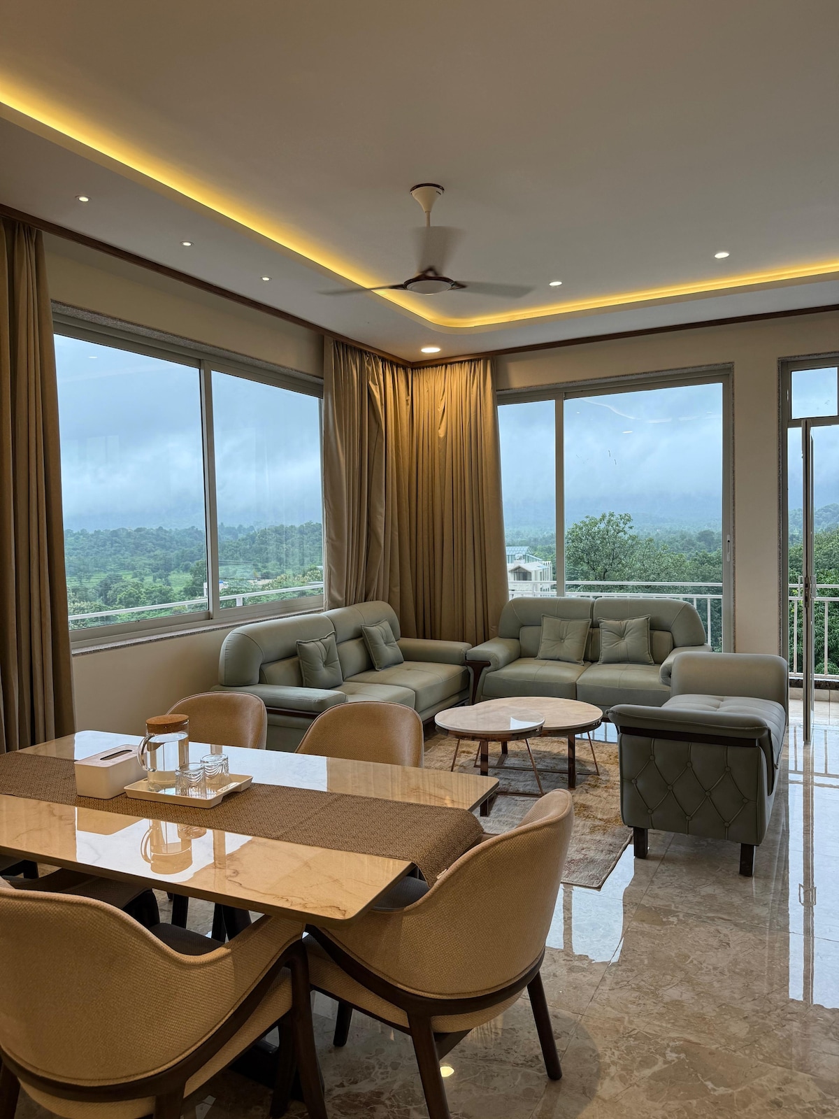 Wrap yourself in the magic of this 3 BHK Villa, fall asleep to the sound of a gentle breeze, fill your eyes with the extraordinary nature that surrounds us. Once you're here, you won't want to leave this beautiful, one-of-a-kind space. Having a Infinity Swimming Pool with a view of lawn, trees and mountains - Dioramas Villa provides the perfect retreat for those looking to relax and enjoy the serenity of the trees, farm and hills.