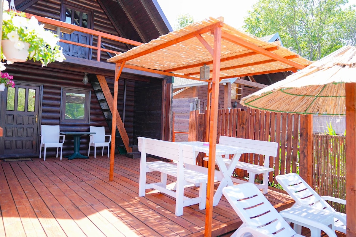 An einem der schönsten Fleckchen Europas steht das 2024 erbaute Holzhaus, auf der weitgehend naturbelassenen Insel Ada Bojana. Direkt auf den Fluss gebaut, in Sicht-, Schwimm- und Laufweite zum Meer. Das Doppelhaus ist vollisoliert und aus möglichst nachhaltigen Baustoffen gebaut und eingerichtet. Es gibt Klimaanlagen, Infrarotheizungen und einen Holzofen. Die Küche ist vollständig eingerichtet und mit Markengeräten ausgestattet, so dass das Haus ganzjährig komfortabel bewohnt werden kann.
