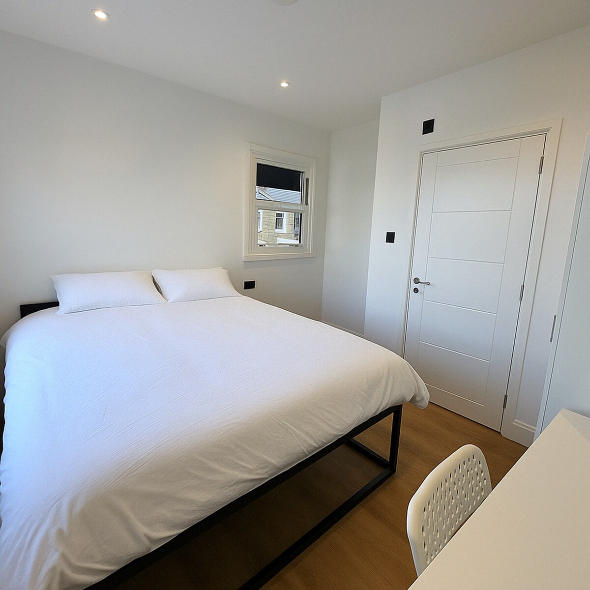 It's a double room with private bathroom within a building of 11 self-contained units. There's one main entrance, and each room has its own private access—similar to a serviced apartment without a reception. Your room includes a private bathroom with a shower, hairdryer, iron, and other essentials—all for your exclusive use. You’ll have 24/7 access using both the building and room entry codes.