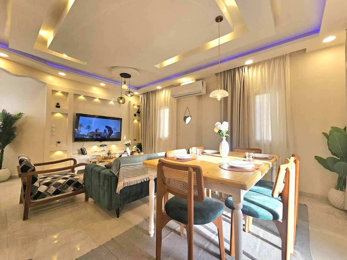 Your Perfect Stay in New Cairo! Wake up to calm Waterway vibes in this modern, cozy studio. Enjoy your morning coffee by the window, binge your favorite shows on the 50” TV, or cook dinner in a fully equipped kitchen. With fast WiFi, comfy furniture, and a 5⭐ host rating, this spot is perfect for solo travelers, couples, or small families looking for peace and style in the heart of New Cairo.