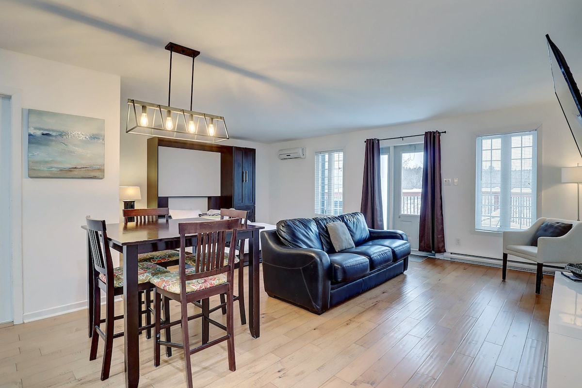 Détendez-vous et relaxez dans ce chaleureux et élégant condo. Vous profiterez de tout le confort et les commodités nécessaires pour passer un agréable moment en cocooning avec vue sur la nature. La cuisine comporte tous les équipements nécessaires pour concocter de bons petits plats. Pourquoi pas une bonne fondue, une raclette ou un petit plat à cuisson lente avec la mijoteuse programmable. Bienvenue également aux gens qui veulent travailler en toute quiétude (bureau aménagé et Internet inclus)