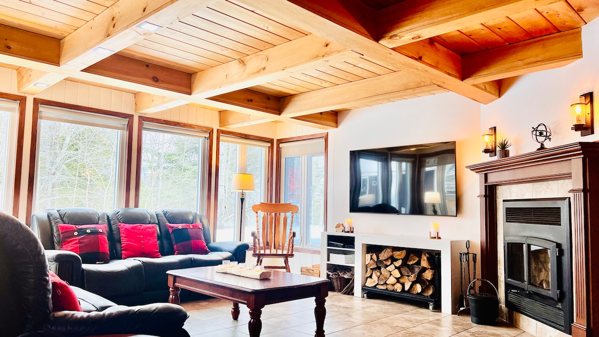 Chalet à aire ouverte tout équipé avec spa privé 4 saisons, situé en pleine nature, avec un architecture unique à Orford, dans les Cantons de l’Est. Parfait pour se retrouver en famille ou entre amis. À moins de 10 minutes : ski, rando, golf, plages, lacs, vélo, activités nautiques et vignobles. Cuisine complète, foyer, espaces lumineux, ambiance chaleureuse et confort. Un lieu idéal pour relaxer, partager, explorer et créer de beaux souvenirs. Préparez vos valises, on vous attend !