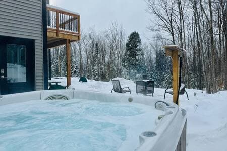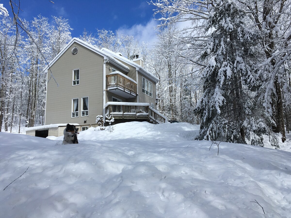 CITQ#307194 - Taxes included in the nightly price. Your ideal family Winter escape! Cozy rustic 3bd/2ba house in the Eastern Townships, perfect for enjoying the snowy landscapes. Warm up by the fireplace after a day of skiing or snowshoeing at Mt Orford, just 20 minutes away. Explore Magog’s winter charm with its restaurants and cafes, only 15 minutes from the house. Montreal is a 1h30 drive for a festive day trip. Make magical Winter memories with your loved ones this season!