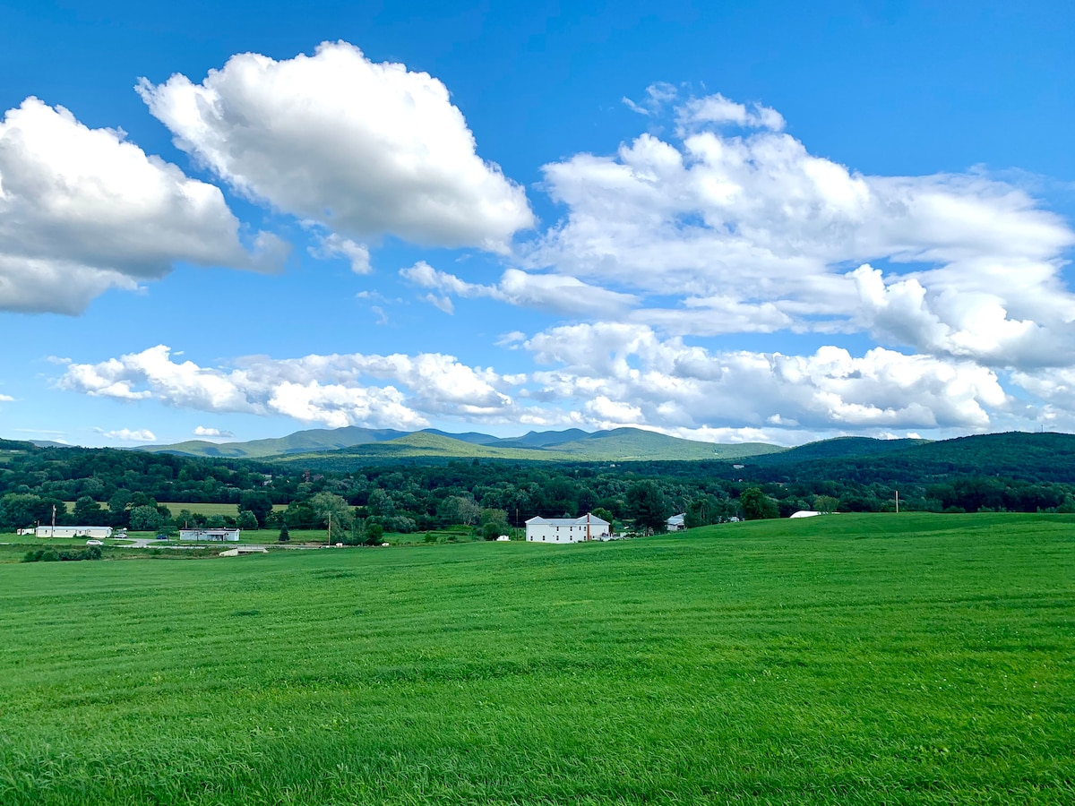 Our guest farmhouse, located 1 mile from the Canadian border, is close to Jay Peak Ski Resort and Mount Sutton. Mountain and meadow views are spectacular from every window! Here, you are perfectly poised to explore both the quaint, foodie-focused, French-Canadian, Eastern Townships, just across the border in Quebec AND the scenic back-roads, abundant lakes, family farms, mountain trails, local pubs, and old general stores of Northern Vermont. Or just enjoy the porch & peaceful atmosphere!