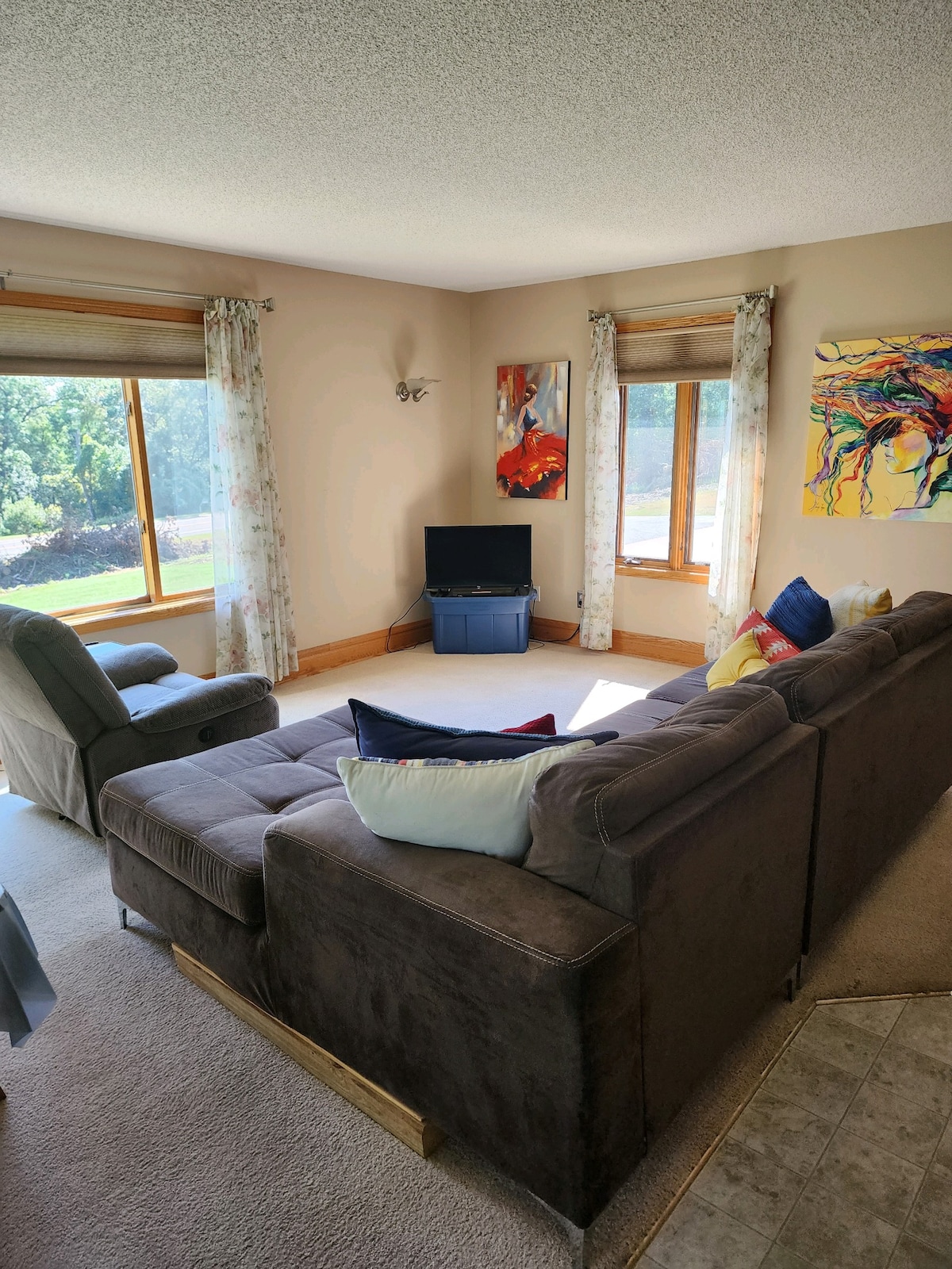 You'll be perched on a hill with stunning lake views from nearly every window- this light-filled home offers the ultimate retreat. Enjoy paddle boards, kayaks, swim mat & floats - all provided! For you fishing enthusiasts, the dock is a perfect spot to reel in a catch. Relax and soak in the serene surroundings!” We are located 50 minutes from the Twin Cities so it won't take long before you are relaxing and enjoying the beautiful sunset from your deck & sipping your favorite beverage!