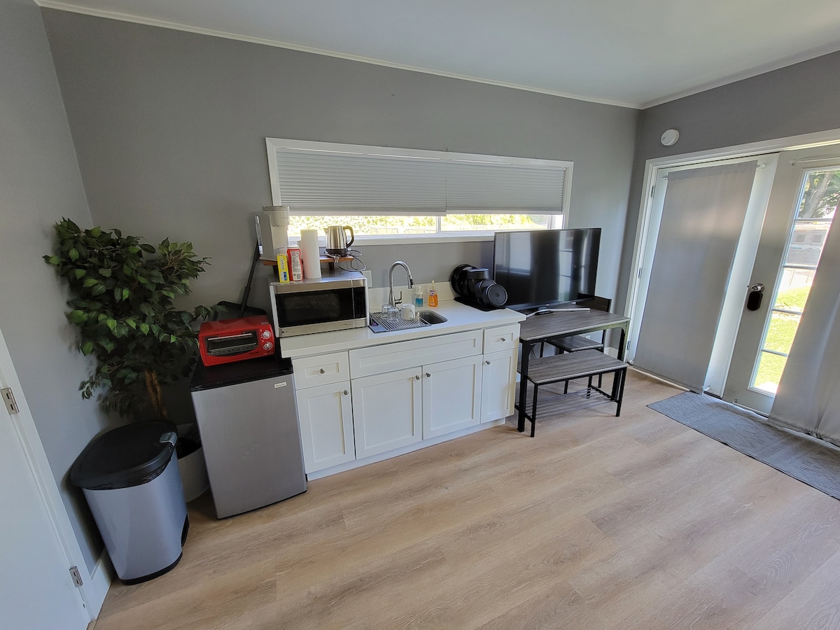 This sophisticated retreat offers complete privacy. Guests enter property from their own gate to self check-in to entire guest house. The ground level space features modern decor and soothing color palette. No stairs to climb. Kitchen and bath utilize white shaker cabinets with anti-slam drawers and quartz countertops. Complete with outdoor dining area. The upscale neighborhood has plentiful street parking. No smoking inside or out.