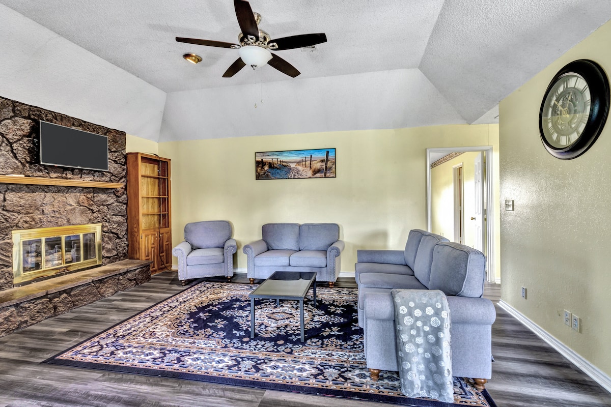 Forget your worries in this perfect getaway! Experience true Texas hospitality in our spacious retreat. Our inviting home offers ample space for the whole family to relax and have fun. Escape the hustle and bustle of everyday life and unwind in a serene setting, complete with a stunning view of the tranquil pond right in your backyard! We are just a short drive to Lake Texoma and The Choctaw Casino. If you are planning a party, we have an event area that is rented separately. Contact Host.