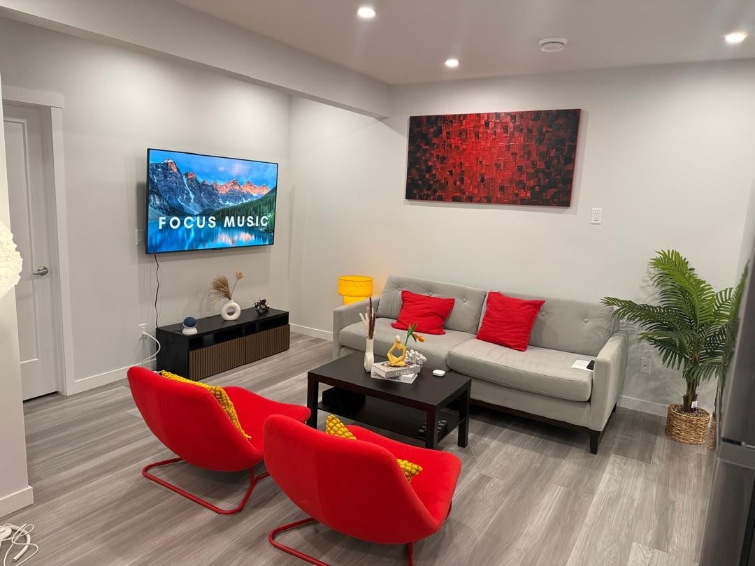 Stay in our Modern Home in one of Edmonton's most sought-after neighborhoods - Fraser Things you will love about this unit: ✔ 1 BDRM Walk-out Bsment with King bed ✔ 55” Smart TV with Netflix ✔ FAST Wi-Fi ✔ Free Street Parking ✔ Seville Fan ✔ Fully stocked Kitchen ✔ In-Suite Washer & Dryer ✔ Easy self check-in ✔ Complimentary coffee & tea ✔ Complimentary shampoo, conditioner, & body wash ✔ Hair dryer ✔ Perfect for Longer Stays ✔ Easy access to Anthony Henday ✔ Walking trails