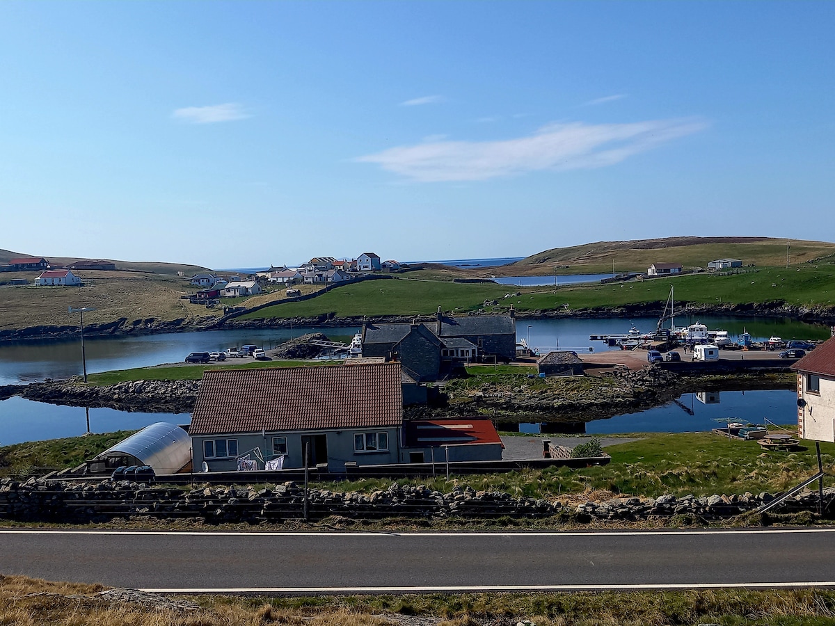 Da Peerie Hoose is a small, cosy little cottage in a row of houses sitting just above the marina in the picturesque and popular village of Hamnavoe, Burra on the sunny westside of Shetland. Fully equipped kitchen, one bedroom with double bed and sofa bed in living room. Smart TV, fibre broadband. Beautiful coastal walks to the lighthouse, caves, sea lochs and beaches. A small patio with picnic table to enjoy the views and sunsets over Foula and outer isles and just admire Atlantic rollers.
