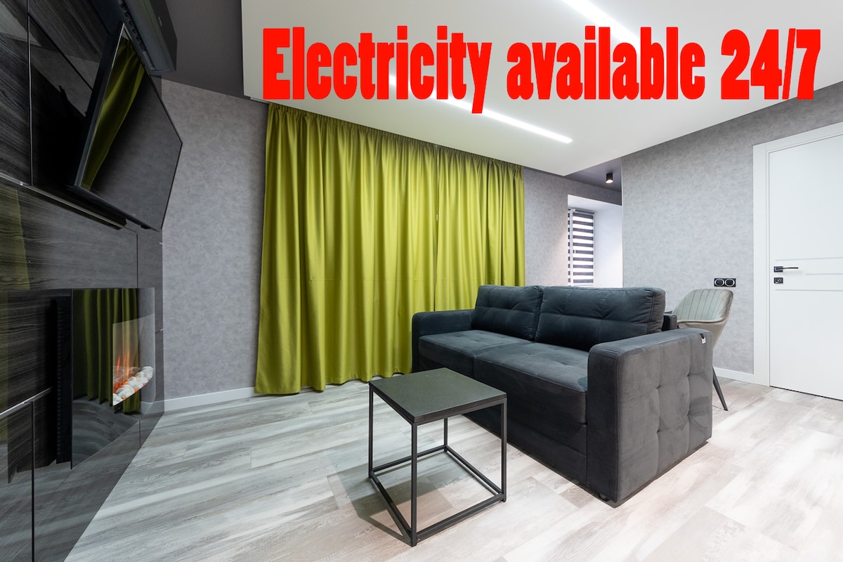 Important: as of this day the property does not get planned electricity outages. This may change in the future. This loft is a 55 sqm 1BR apartment on the fifth floor of a quiet, residential building. Amenities. - WiFi + LAN - 4K TV - A/C unit in each room. Kitchen. -Coffeemaker: espresso machine -Electric kettle. -Dishwasher. -Microwave. -Induction stove. -Oven. -Refrigerator. -Fridge. Bathroom. -Washing machine + Dryer -Water heater. -Towel heater. -Iron. -Hairdryer. -Heated floors.
