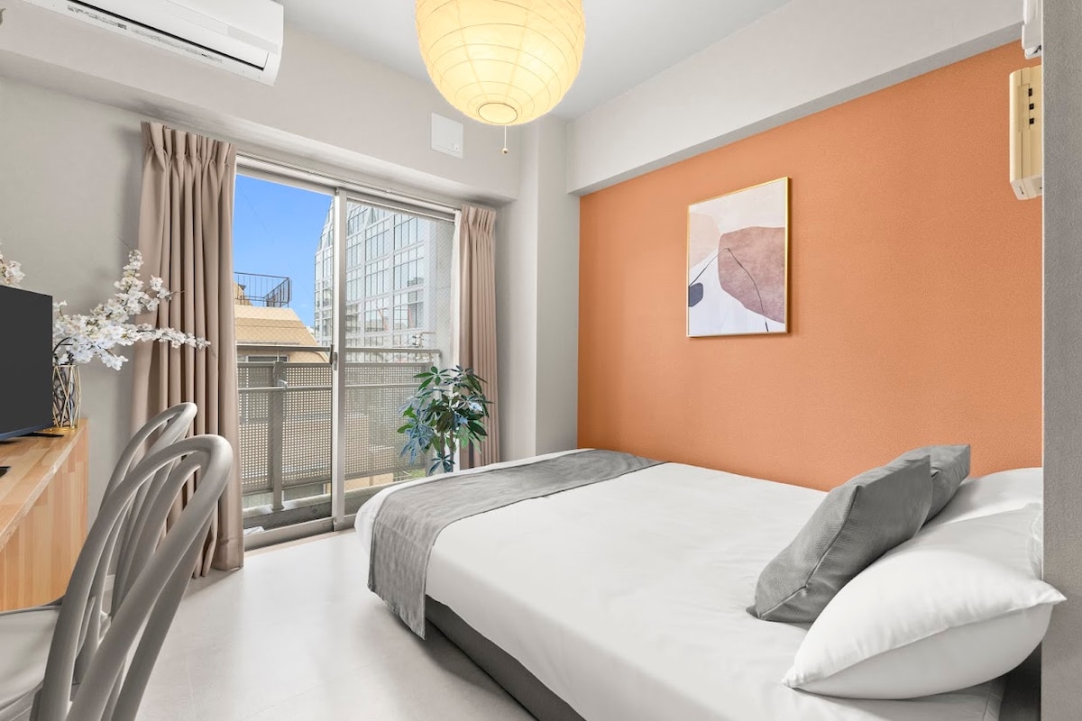 A serene, minimal loft just one stop from Shibuya and Roppongi—perfect for solo travelers or focused remote work. Featuring fast Wi-Fi, an Aeron chair, and a compact double bed (150×210cm)—ideal for one, cozy for two. The glass bathroom and sleek concrete walls give it a modern edge (note: some winter condensation—just run the bathroom fan). While there’s no closet, the space fits four large suitcases and includes a hanging bar and ten wall hooks to keep things tidy.Laundry service weekly.