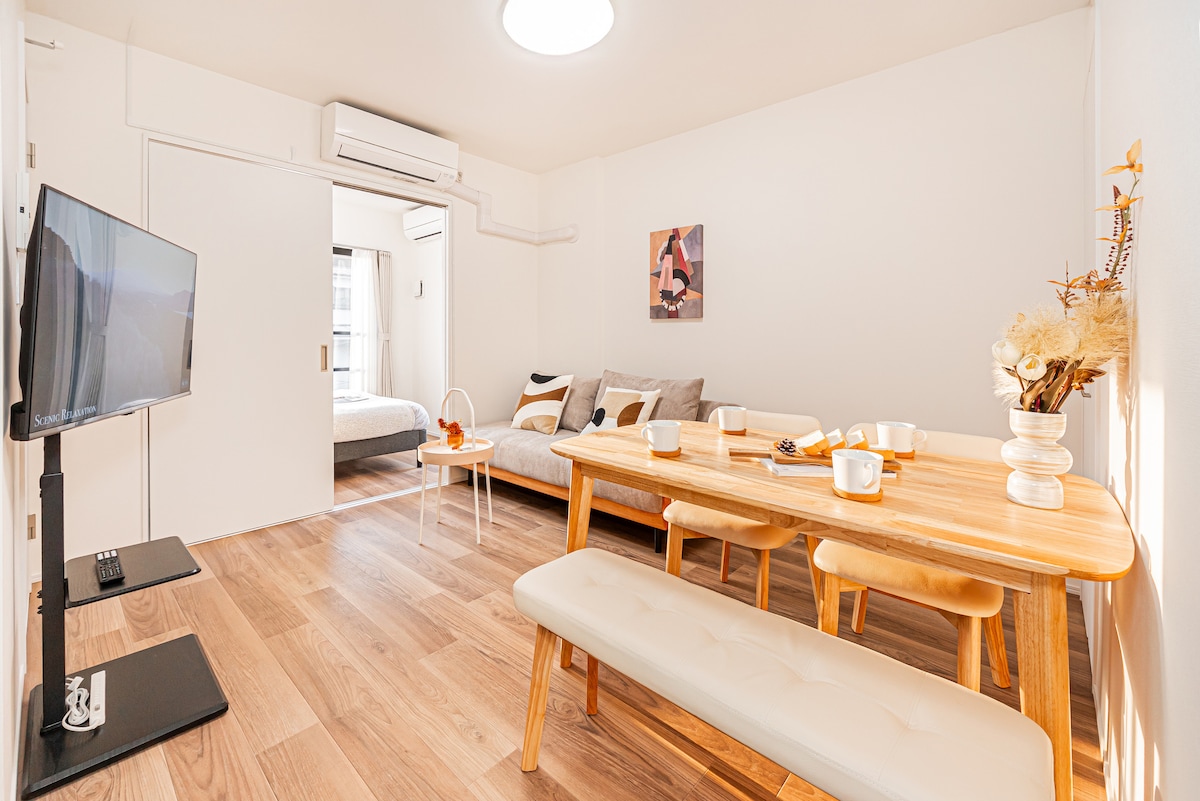 Experience a unique blend of Scandinavian and Japanese design in this renovated 86-year-old, two-story home in Sangenjaya. With 80㎡ (900 ft²) of bright space, a 3-meter ceiling, and a dramatic 7-meter ceiling above the kitchen, it’s perfect for families and small groups. Just 6 minutes to the station and 4 minutes to Shibuya, the house offers the perfect mix of calm and city convenience in one of Tokyo’s most beloved neighborhoods, Sangenjaya.