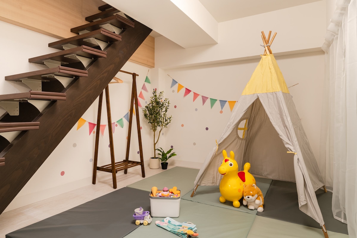 距离涩谷站仅2分钟电车路程,位于涩谷区的惠比寿是一个结合了精致氛围与便利性的热门区域,连续多年荣登“日本人最想居住街区排行榜”第一名。房间距离惠比寿站步行仅3分钟。 这里汇聚了从米其林餐厅到隐秘美食店的多样餐饮,可品尝到来自世界各地的料理和当季美味。咖啡馆和酒吧也很丰富,夜晚同样时尚宜人。 室内经过翻新,配备全新家具和家电,采用现代工业风设计。35平方米空间最多可容纳6人(建议4人),治安良好,适合家庭入住。卧室的壁橱改造成专注工作区,配备高速Wi-Fi,非常适合远程办公。 虽然没有电梯,但5楼的房间远离喧嚣,环境宁静。阳台设有人造草坪、椅子和桌子,春天可边赏樱花边放松。 代官山、中目黑也在步行范围内,购物和街头漫步轻松自在。无论是主要观光、品尝美食、工作还是休闲,惠比寿都能让您享受舒适且特别的东京之旅。
