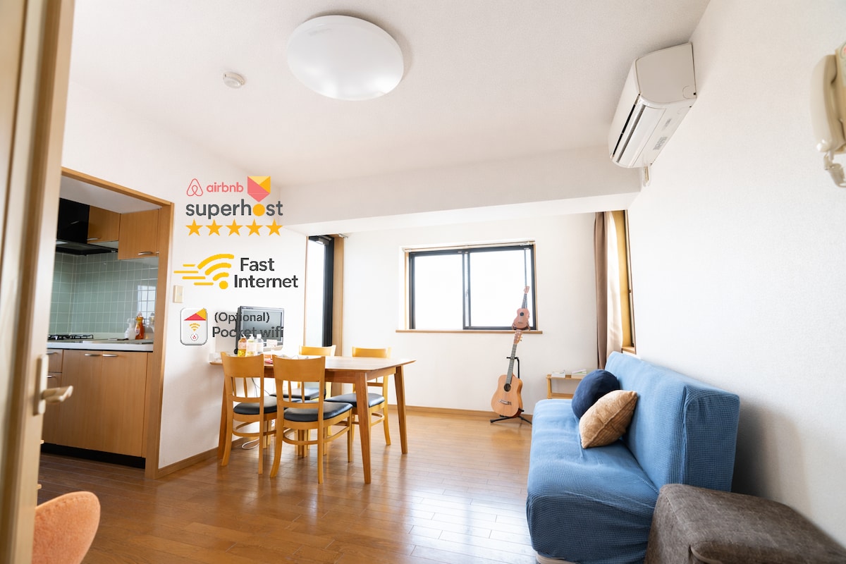 步行2分钟到车站/提供免费无线网络/最多可容纳8人/宽敞/设施齐全!