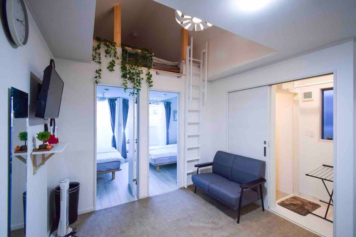 新築/78㎡/1軒家貸切/浅草10分/3寝室/5ベッド/ソファーベッド1/ロフト布団3/10名