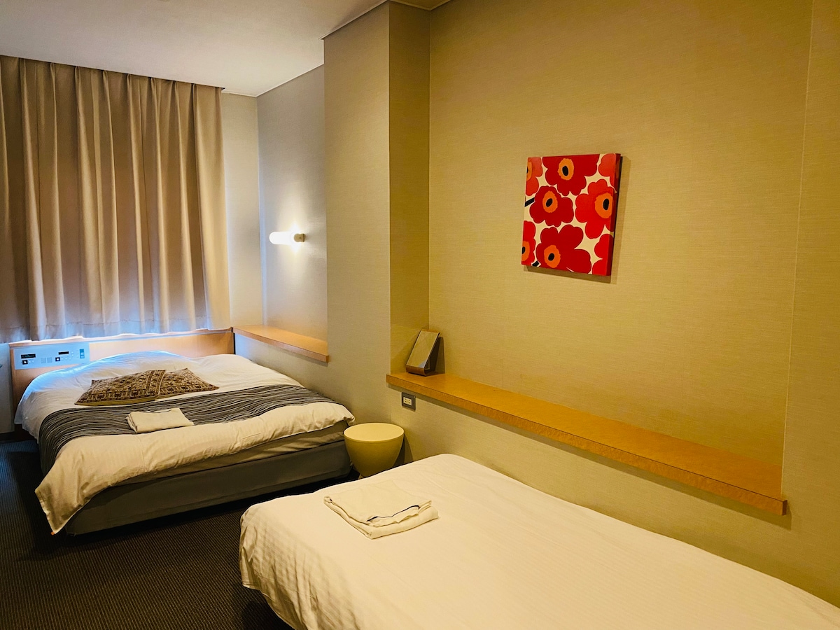 从三条京阪站步行8分钟|安静的京都住宿|平安神宫、美术馆、祗园步行范围内|高级双床房39.4㎡