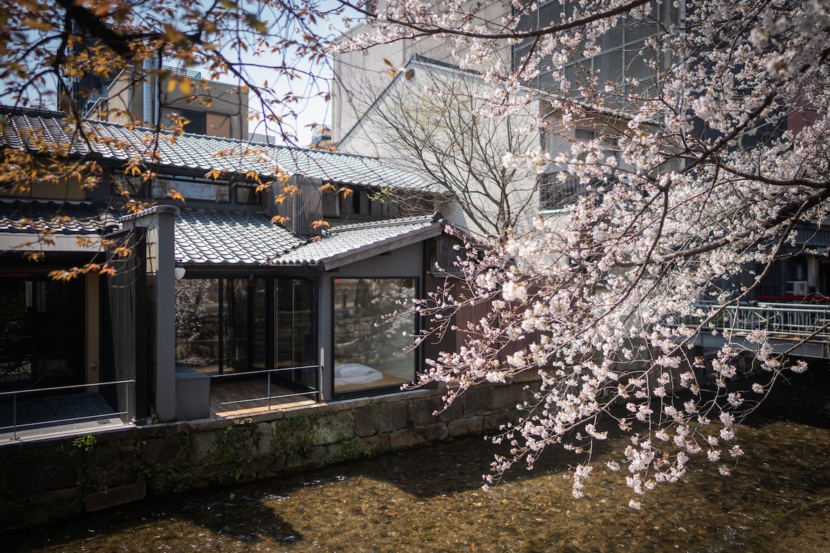 TabiTabi Kamogawa is a private Machiya house for one group per day, located along the Kamogawa River in Kyoto. From the living room and balcony you can enjoy beautiful river views and the changing seasons — cherry blossoms in spring, lush greenery in summer, colorful autumn leaves, and quiet winter scenery. Birds often fly across the river, creating a peaceful Kyoto atmosphere. The sunroom also features an indoor glamping tent for a unique stay with family or friends.