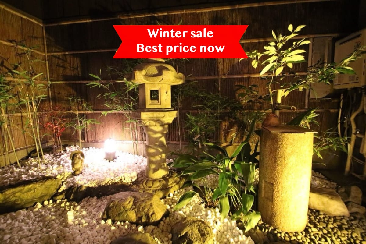 専用露天風呂付一棟貸切・伝統的木造家屋・2BDR。八坂神社・伏見稲荷大社・三十三間堂・祇園・東福寺