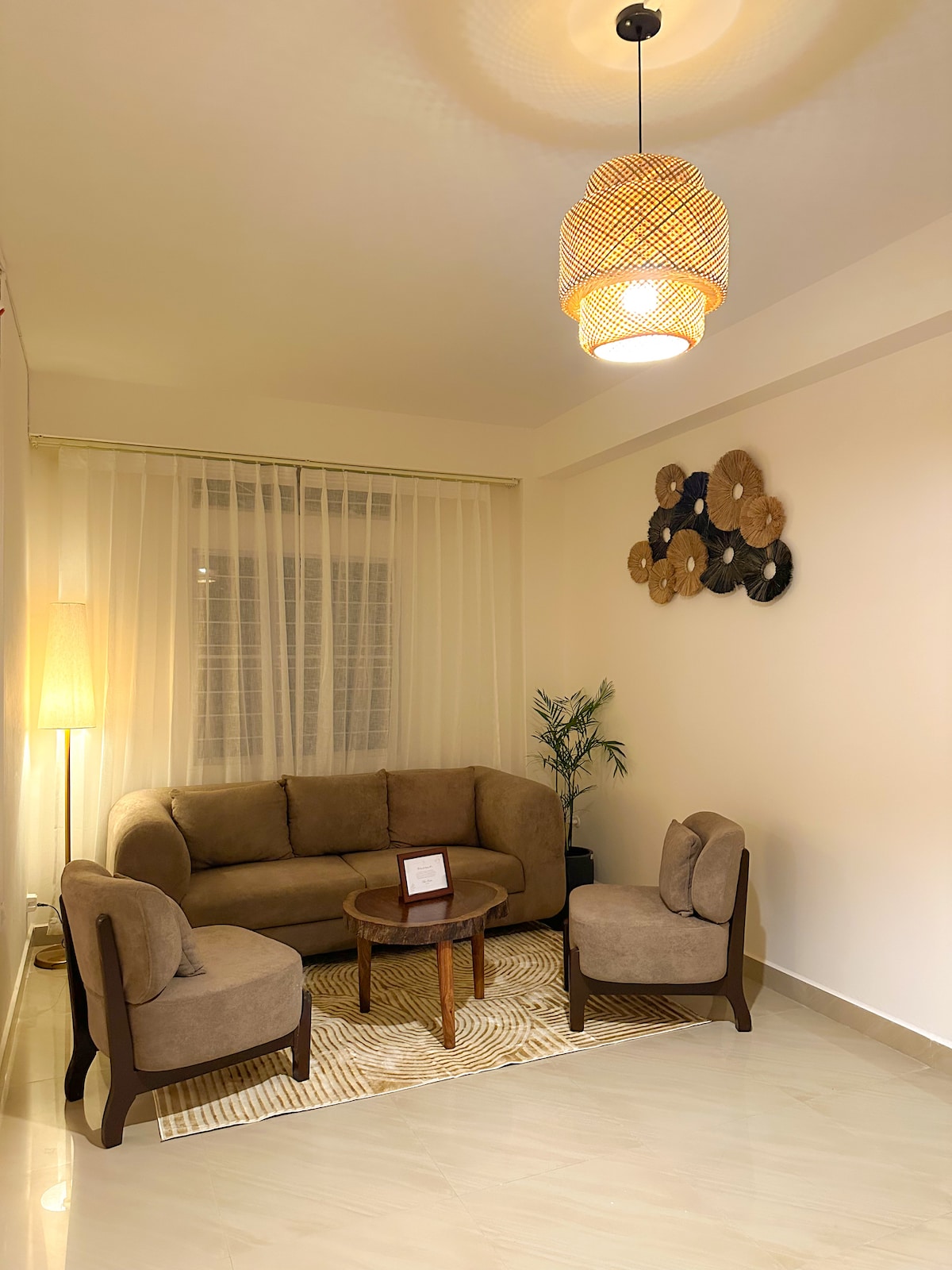 Step into a warm and thoughtfully designed 2BHK retreat in Shillong, styled with soft earthy tones, handcrafted wooden furniture and cozy boho accents. The apartment offers a spacious living room, serene bedrooms with hotel-style bedding and a charming dining nook with a live-edge wooden table. Soft lighting, curated décor and peaceful surroundings make this the perfect space to relax, unwind and feel completely at home. Perfect for couples, families or anyone seeking a peaceful mountain escape.