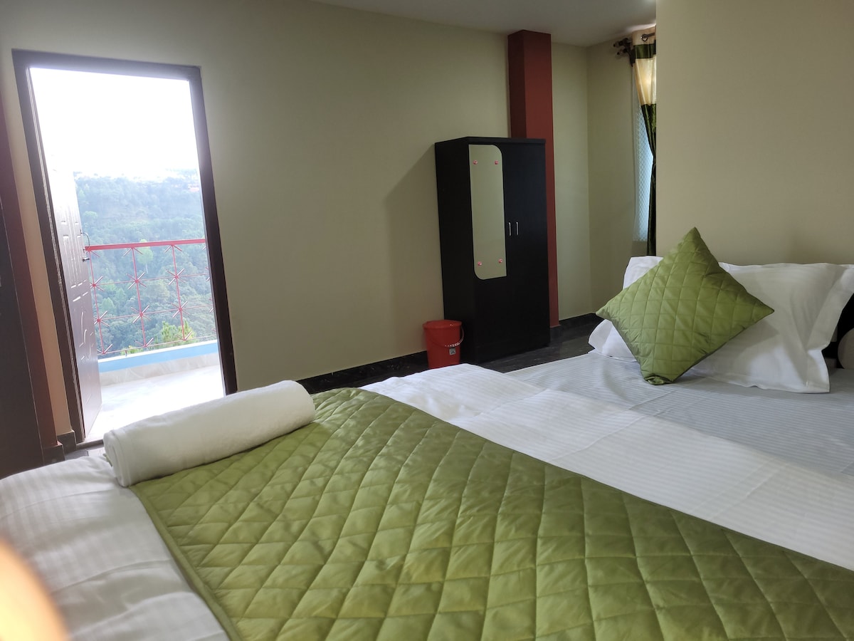 The whole group will be comfortable in this spacious and unique space. We welcome families to our paranormic view of the city, the forest and the himalayas from the property. Lush green forest for trek and a roof top restaurant.