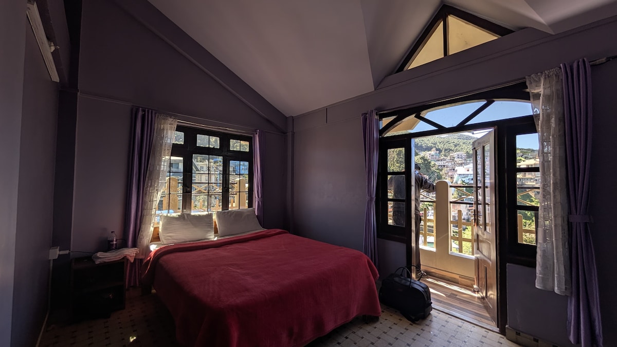 Balcony overlooking the Hills and Shillong City, this spacious room offer king size bed, Free-Wifi, TV and DTH, private bathroom and toilet, etc.