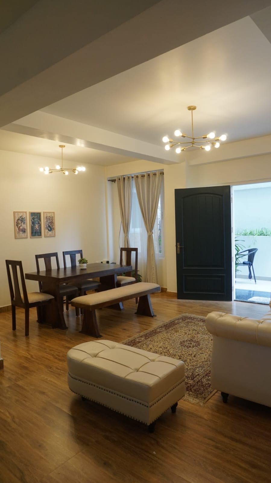 The Garden is a peaceful retreat near Shillong Golf Course, offering a quiet escape in a semi-residential area. Surrounded by pine trees and fresh mountain air, it features a cozy, homely atmosphere with stylish interiors, Ideal for couples, backpackers, business travelers, and families, it has 2 beautiful bedrooms with 2 bathrooms and a spacious living/dining area that opens onto a balcony and access to the terrace.