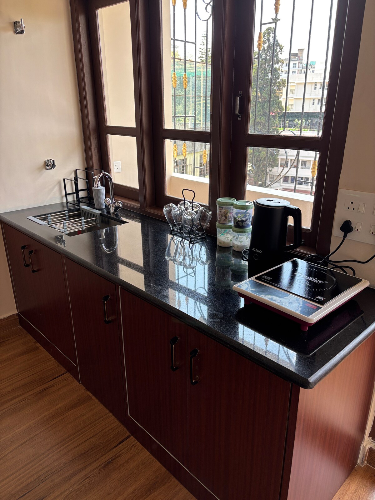 This lovely small rooftop studio apartment is on the 3rd floor and has a 32" Smart TV, and basic kitchen items for you to prepare your own breakfast. There is also a patio and is ideal for young people who have no problem climbing stairs. Situated in one of the best residential and commercial area of Shillong, we are only a 5 minutes walk away from from the bustling Laitumkhrah main road where you can find all kinds of shops and some of the best cafes, bistros, and restaurants in town.