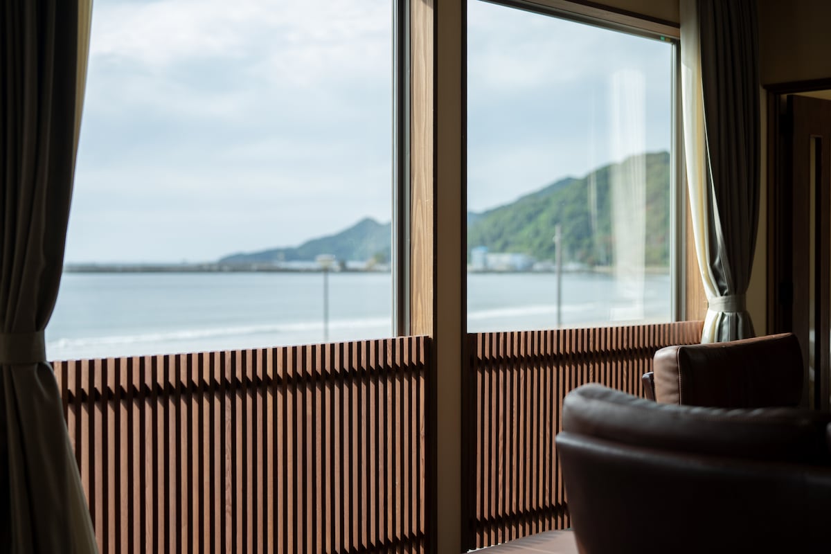 KAITAN Inasa no Hama is a private villa overlooking Inasa Beach and the Sea of Japan. Located close to Izumo Taisha Grand Shrine, it is an ideal base for sightseeing. All rooms face the ocean, offering views of Benten Island—known from the Kuniyuzuri myth—and the stunning sunsets over the Sea of Japan. On clear days, Mt. Sanbe can also be seen.