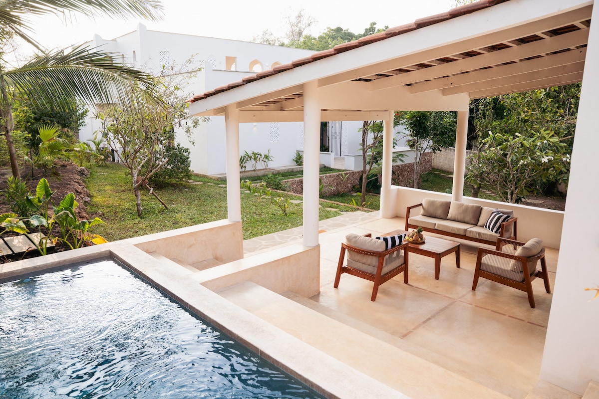 Welcome to Pool Villa Three at Saffron Villas - An adults only (16 +) boutique hideaway in the heart of Diani perfect for couples, solo travelers and friends. Designed for comfort and seclusion, this elegant villa comes with its own private swimming pool and lush garden surroundings - perfect for guests seeking a peaceful escape just moments from the beach.
