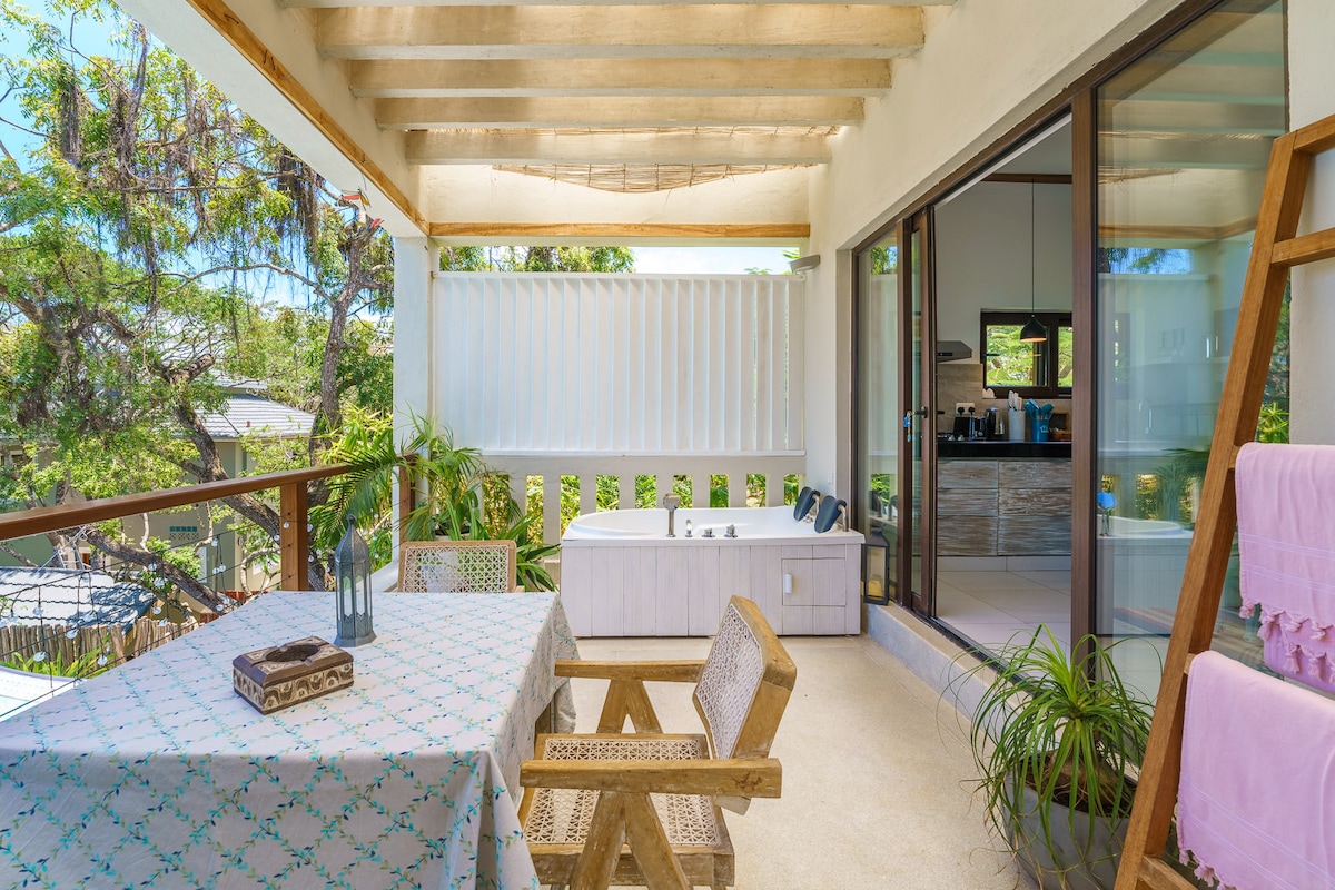 Nestled on a private property shaded by indigenous trees, Monkey Suites offers exclusive beach access just a one-minute walk away. The Vervet Suite is one of two self-catering residences, a serene one-bedroom retreat with a private pool and garden. Inside, enjoy air-conditioned comfort; outside, relax under the trees, with ocean breezes and playful monkeys for company. Breakfast is available at an additional cost. A peaceful blend of privacy, comfort, and barefoot luxury.