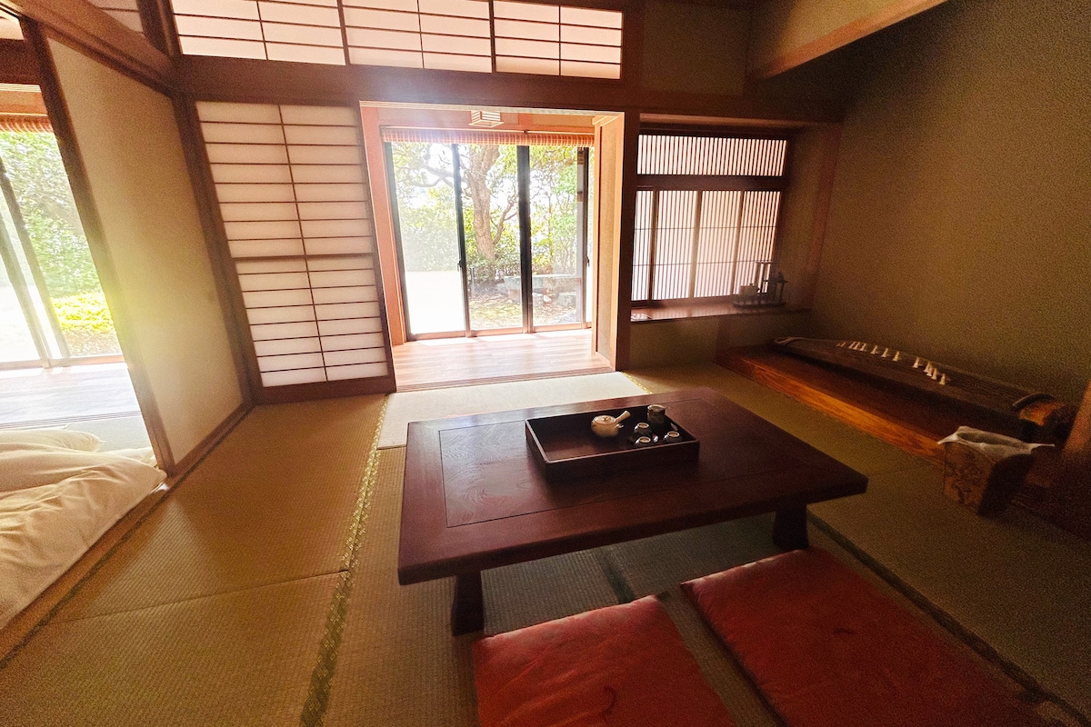 昭和初期の古民家をホスト自らリノベーションした一棟貸しの宿「沢海庵(TAKUMI_AN)」。 静かな港町にあり、港と山に続く果樹園に囲まれた立地です。観光地化されていない素朴な暮らしを体験できるのが魅力。 高速Wi-Fiや独立したワークスペースを備え、徒歩圏にはコンビニやレストラン、近くには源泉かけ流しの温泉もあり、長期滞在やワーケーションも安心です。徒歩数分の海岸からは雄大な夕日や、対岸の岬からは海に浮かぶ富士山も望めます(※宿からは見えません)。 庭では焚き火や星空の下でのBBQを、室内ではシアターや快適なベッドでゆったり。4名様までは2階の寝室と1階のリビングを独立して利用でき、特にゆったりとお過ごしいただけます。 5名以上ではリビングに布団を敷き、複数の家族や仲間と共に過ごす日本らしい滞在も可能です。畳に布団を敷いて眠り、漁港の音やカエルの声に包まれる夜は、日本ならではの体験。 カップルや小さなファミリーに特に好評で、プライベートを重視し自然や生活を自分のペースで楽しみたい方におすすめ。落ち着いた滞在を大切にしており、地域の暮らしと調和した宿です。