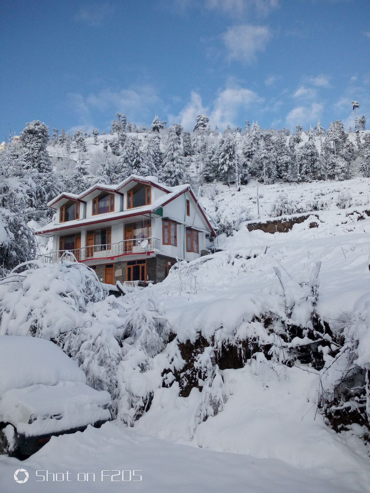 The magnificent combination of wood, stone and glass in this abode seamlessly merges into the surrounding backdrop like a painting. The rooms are spacious, pleasantly lit and well-equipped for a comfortable vacation. The excellent woodwork at this home adds to the charm of this abode.Drive in,parking available,just 5 min walk to Mall road,wifi available.
