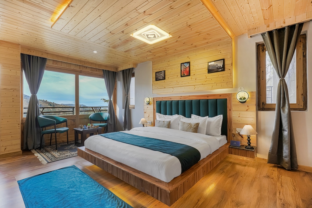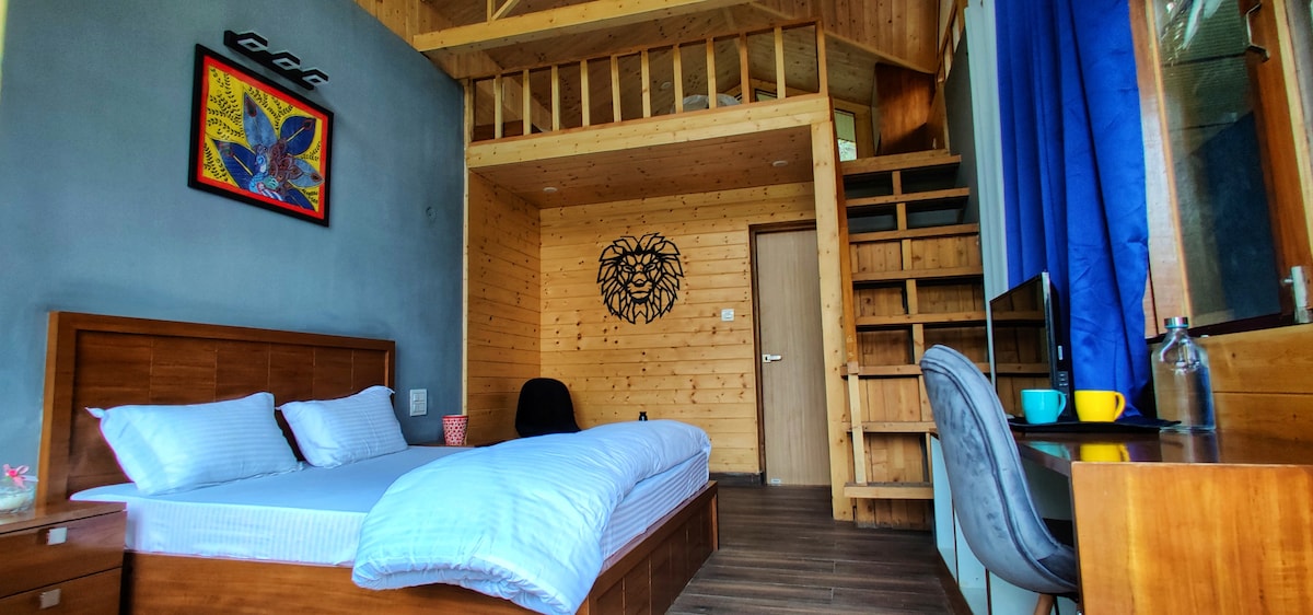 Stay in one of the most beautiful and unique houses in India- described by Conde Nast Traveller magazine as “gorgeous” & as a “crown on a mountain”. The villa opens into a 2300 acre protected forest on one side. Tastefully designed & furnished with five-star quality mattress & bedding the suite it has won prestigious design awards. 360 degree amazing views, home cooked meals, cedar forest, bonfire, electric kettle etc