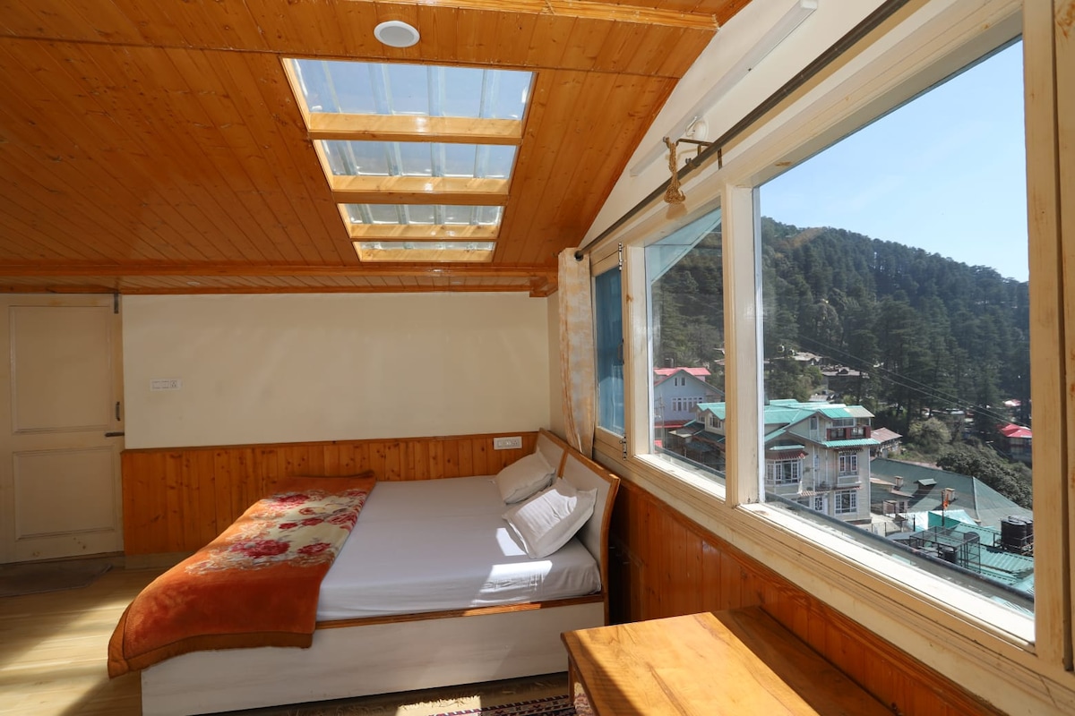 Welcome to our cozy yet luxurious attic home. If majestic views, arty decor, and retro chic is your vibe then this homestay is for you. It is a perfect combination of art and luxury while being super comfortable. This is most luxurious offering from Shimla Gypsy. Placed on the top of our house with a 360° and sky view, it has all the comfort of a mountain house to offer, amidst nature.